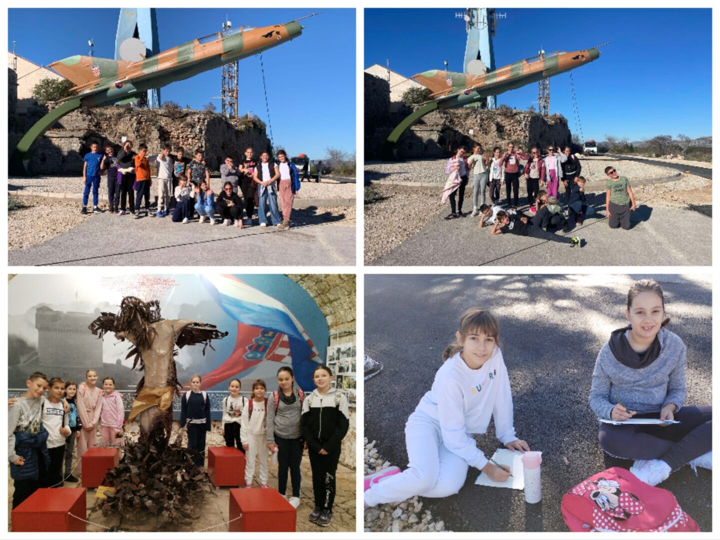 Četvrtaši su danas proveli poučan i zanimljiv dan na izvanučioničkoj nastavi. Iz škole su krenuli “stazom deva” do tvrđave Imperial na Srđu i uživali u jedinstvenom pogledu. Poseban dojam na učenike ostavio je posjet Muzeju Domovinskog rata, gdje su kroz izložbe, multimedijalne sadržaje i autentične predmete imali priliku naučiti više o Domovinskom ratu. Nakon razgledavanja, nastavili su s nastavom na otvorenom. Promatrali su MIG – borbeni avion koji je poslužio kao inspiracija za njihove likovne radove.