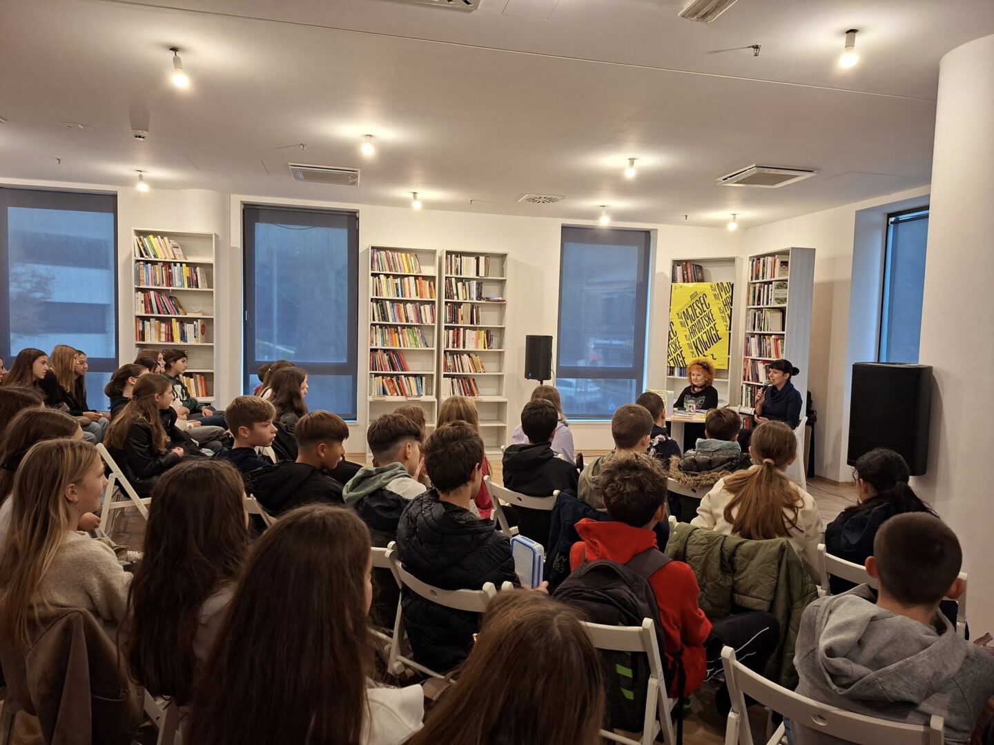i topao način predstavila svoj stvaralački put te govorila o temama koje prožimaju njezina djela – od odrastanja i prijateljstva do suočavanja s izazovima suvremenoga života. Posebnu je pozornost posvetila romanu “Psima ulaz zabranjen” koji naši šestaši čitaju.