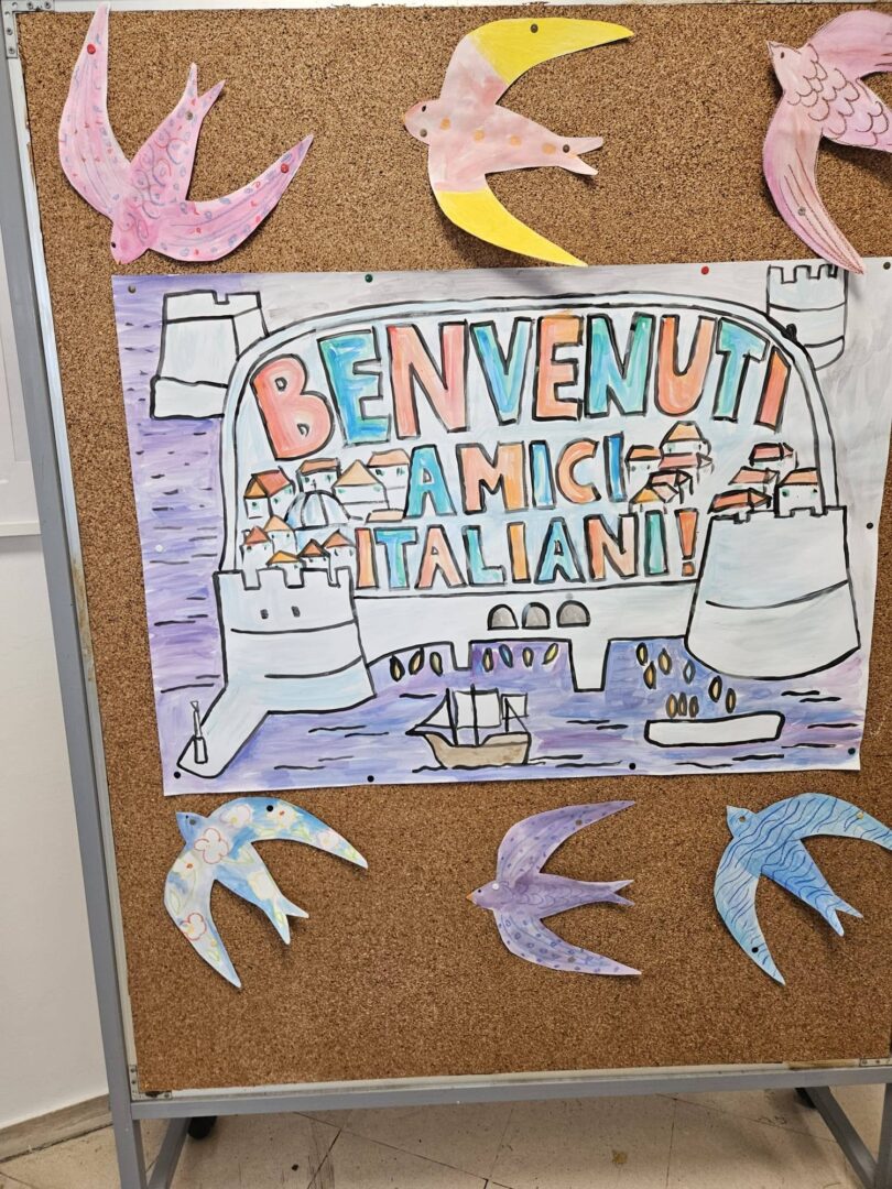 Naše talijanske goste dočekali su učenici 7. razreda koji uče talijanski jezik te su ih prigodno pozdravili i ukratko upoznali s našom školom.